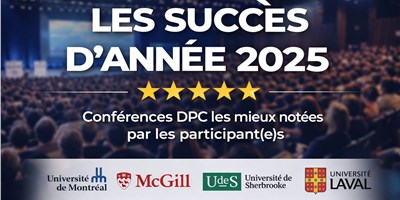 Les Succès d’année est une sélection des conférences en DPC les plus appréciées par les participants en 2025 aux Universités de Montréal, de Sherbrooke, de McGill et Laval