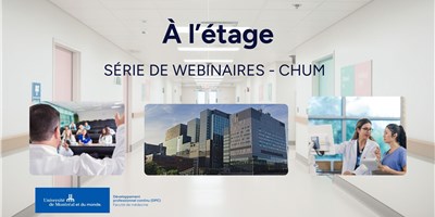 La série "À l'étage" du Département de médecine du CHUM est une série de webinaires qui vise à réviser les enjeux de pratique des médecins œuvrant en milieu hospitalier.